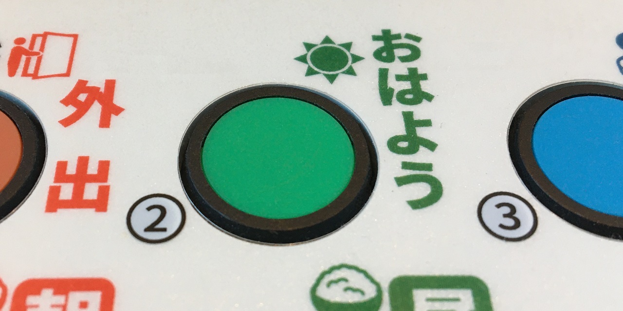起床時間の乱れは、生活リズムの乱れに繋がります。 ケアシルはボタン押下と曜日変りの音声メッセージで規則正しい生活を促し、生活リズムの安定化を図ります。